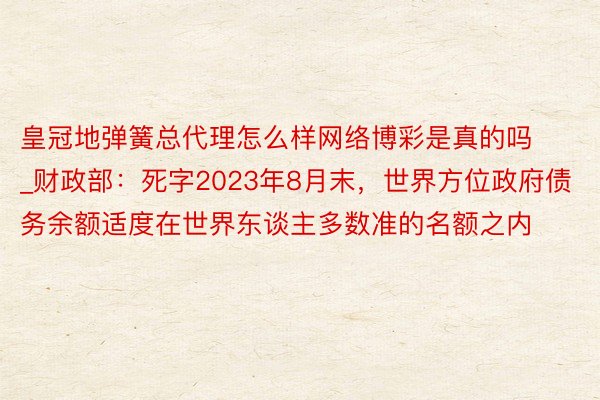 财政部公布8月方位政府债券刊行和债务余额情况。2023年8月,世界刊行新增债券7143亿元,其中一般债券1136亿元、专项债券6007亿元。2023年1-8月,世界刊行新增债券36849亿元,其中一般债券5871亿元、专项债券30978亿元。死字2023年8月末,世界方位政府债务余额387480亿元,皇冠足球网站适度在世界东谈主多数准的名额之内。其中,一般债务149314亿元,专项债务238166亿元;政府债券385822亿元,非政府债券神色存量政府债务1658亿元。